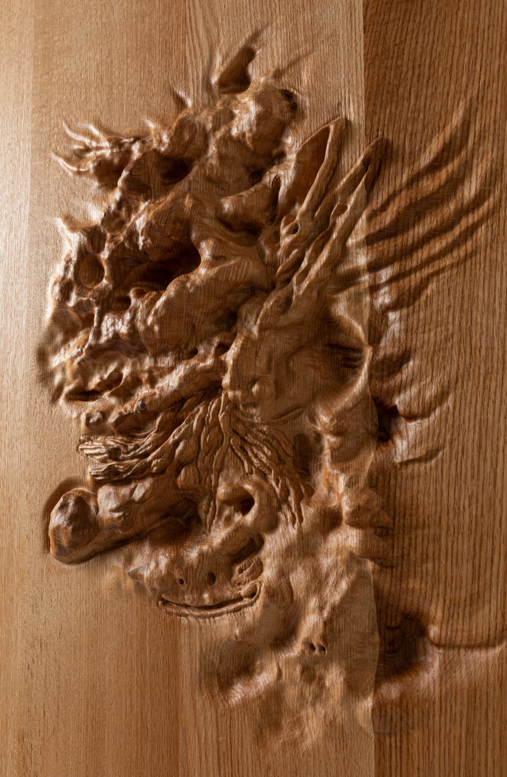 The CNC router shapes the wood at incredible speed, bringing the digital drawing to life to wooden planks. Each drawing engages in a dialogue with the material and the history of each plank, where knots and growth rings add a new dimension to the drawing.