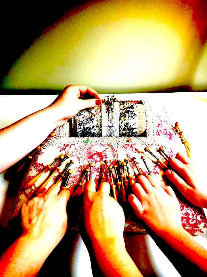 Knipl hefur verið stundað síðan á 17. öld á Íslandi en er talið vera upprunnið á Ítalíu á 15. öld. Blúnda er búin til úr fínlegum þráðum sem vafðir eru upp á knipplipinna en það er formaður Heimilisiðnaðarfélagsins, Kristín Vala Breiðfjörð, sem leiðir smiðjuna.